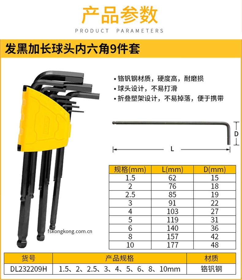 DELI/得力 DL232209H 发黑加长球头内六角组套9件套(黑)(套)