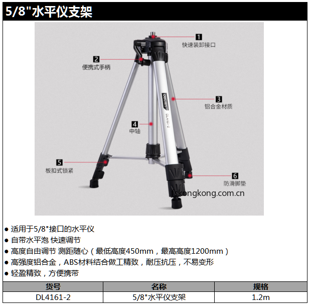 DELI/得力 DL4161-2 水平仪支架1.2m铝合金(白)(把)