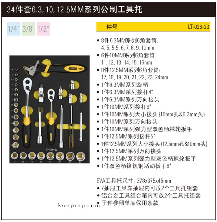 STANLEY/史丹利 LT-026-23 34件套6.3;10;12.5MM系列公制工具托