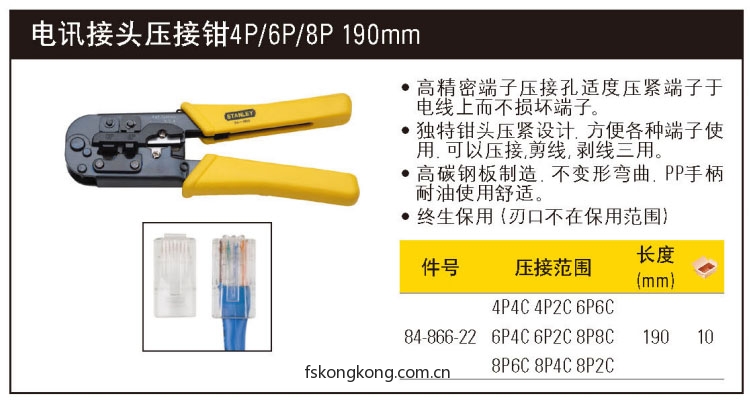 STANLEY/史丹利 84-866-22 电讯接头压接钳4P/6P/8P 190mm